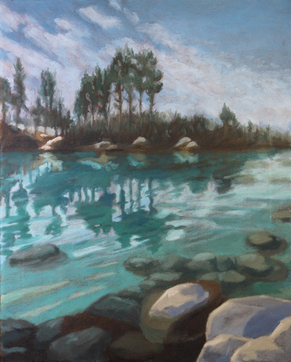 As an oil painter, my images align with the tradition of poetic realism, a movement defined by lyrical realism with a cinematic, yet non-narrative, vibe. My process is strongly rooted in the natural world, every painting inspired by living in the Sierra Nevadas and trekking around Lake Tahoe.